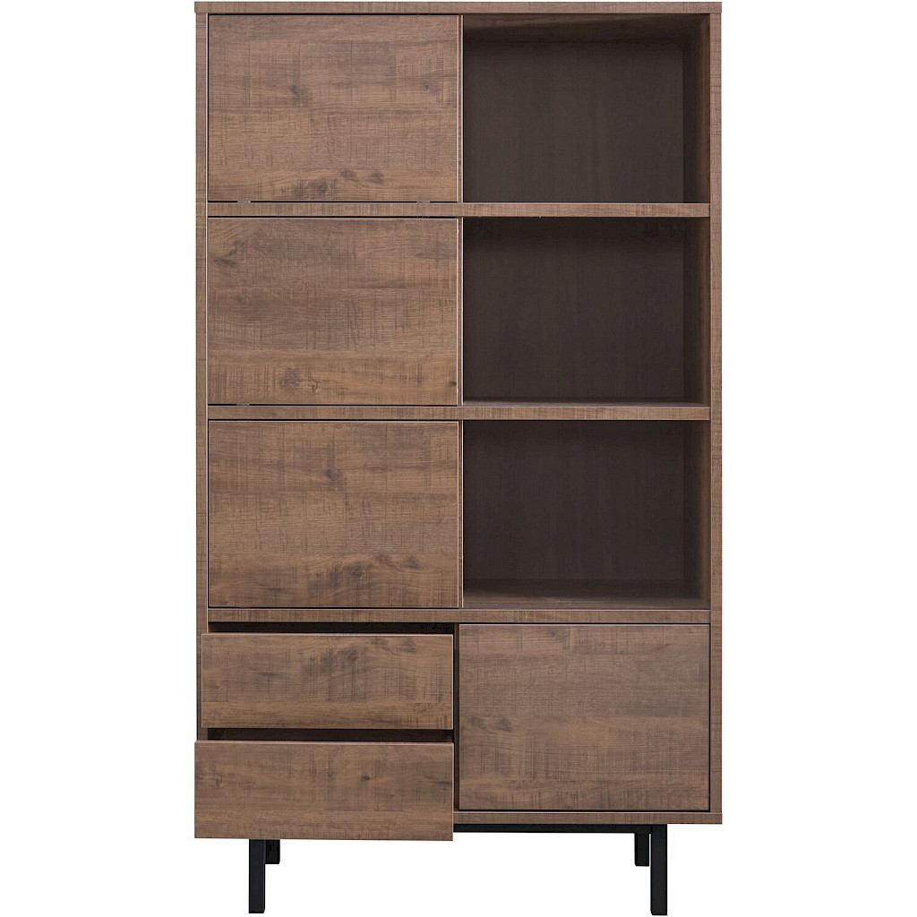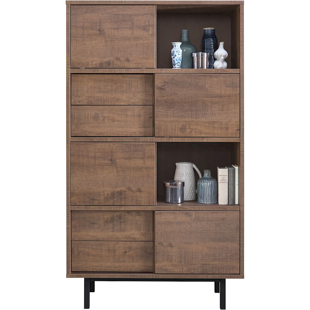 Breng charme en sfeer in je interieur met de opbergkast Spazzare. Dit stijlvolle meubel is voorzien van een melamine toplaag met een donkerbruine, mangohouten look. Hierdoor is de opbergkast kras-, slijt- en stootbestendig en geniet je tegelijkertijd van de uitstraling van echt hout.