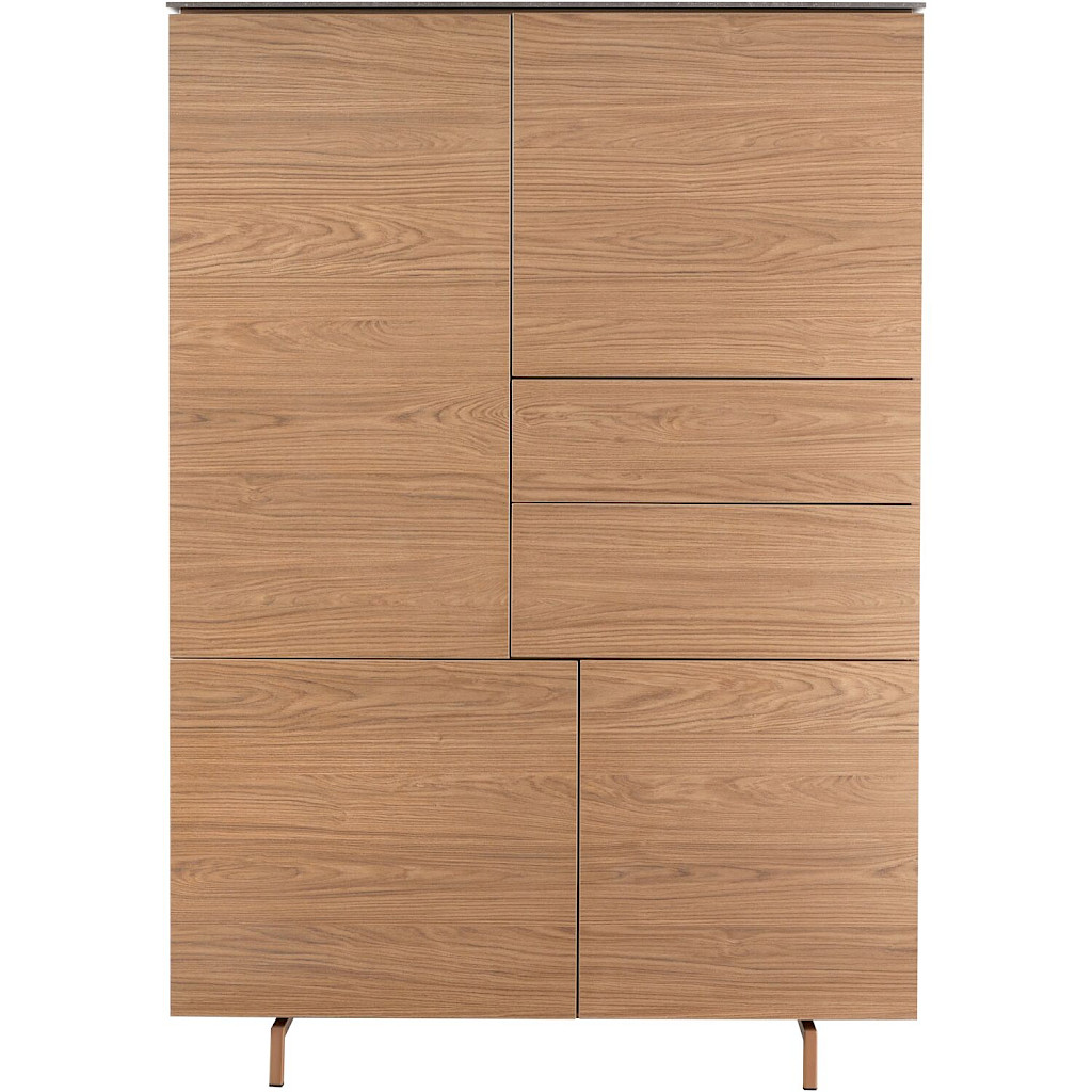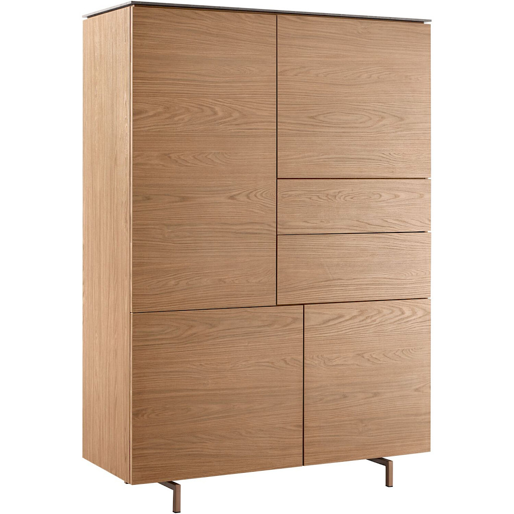 Opbergkast Stonara is 124 cm breed en 170 cm hoog en is uitgevoerd zonder handgrepen. De laden en deuren zijn voorzien van een push-to-open systeem. De ladenfronten zijn standaard uitgevoerd in Lamulux kleur Hazel, optioneel is er tegen meerprijs een extra set ladefronten te bestellen in marmerstructuur. Zo kun je de kast thuis aanpassen in uitstraling. Opbergkast Stonara is onderdeel van een meubelserie en daarom goed te combineren met andere meubels uit dit woonprogramma.