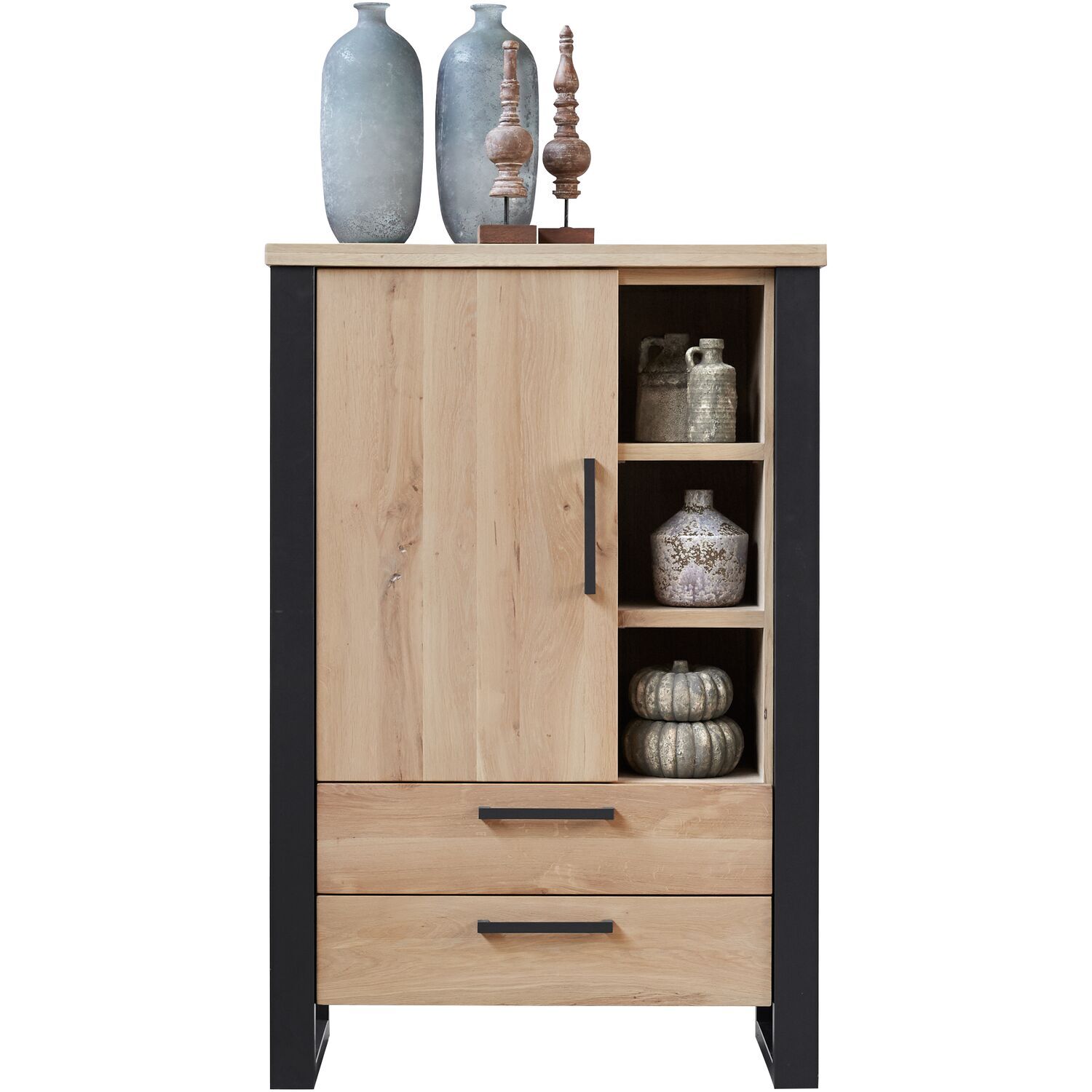 De opbergkast Verato heeft een deur, 2 laden en 3 open vakken. De afmetingen van de open vakken zijn ongeveer H28xB26xD40cm. Achter de deur vind je 2 legplanken. De kast is dus zowel ideaal om je leuke accessoires of boeken een plekje in het zicht te geven als om spullen in op te bergen. Deze boekenkast wordt voorgemonteerd geleverd en is uitstekend te combineren met de andere meubelen uit de Verato serie.
