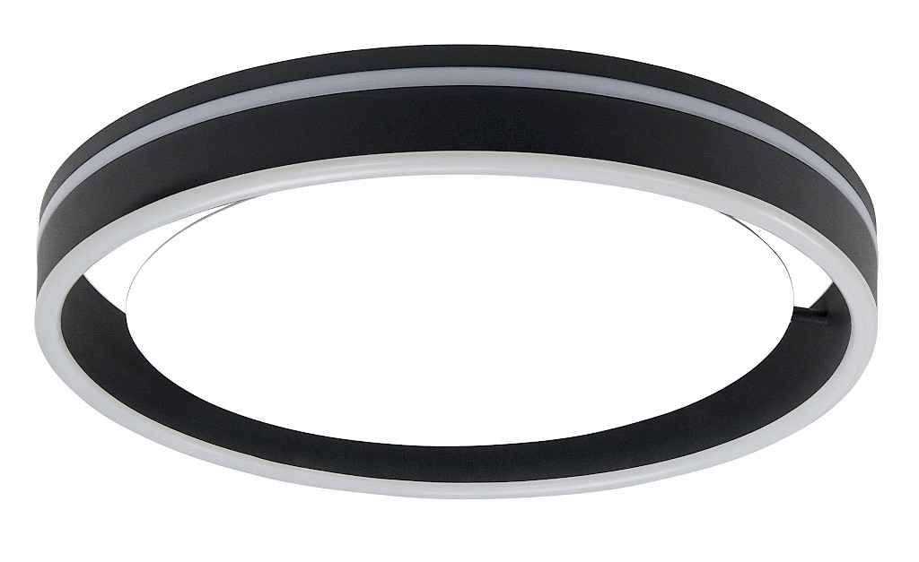 Plafondlamp Double round zwart met 1 lichtpunt en Ø 40 cm. Deze lamp wordt compleet geleverd met lichtbron(nen). Als lichtbron kan alleen een LED lamp worden gebruikt. Incl. dimmer.