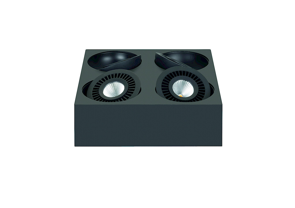Plafondlamp Eye zwart 4 lichtpunten . Deze lamp wordt compleet geleverd met lichtbron(nen). Als lichtbron kan alleen een LED lamp worden gebruikt. Dimbaar met tronic dimmer.