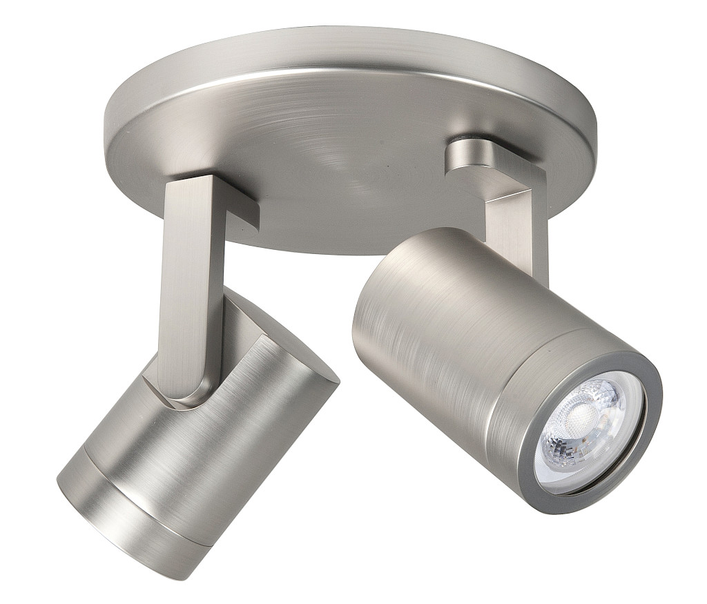 Plafondlamp Halo Spot nikkel 2 lichtpunten en Ø 17 cm. Deze lamp wordt geleverd zonder lichtbron(nen). Als lichtbron kan zowel een halogeen- als LED lamp worden gebruikt. Dimbaar via externe dimmer.