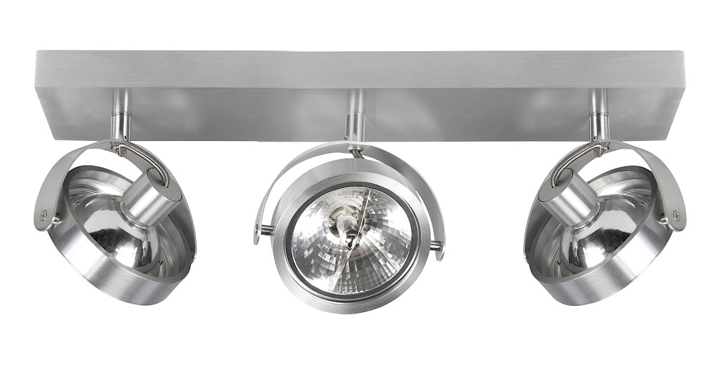 Plafondlamp Malta aluminium 3 lichtpunten . Deze lamp wordt compleet geleverd met lichtbron(nen). Als lichtbron kan zowel een halogeen- als LED lamp worden gebruikt. Dimbaar via externe dimmer.