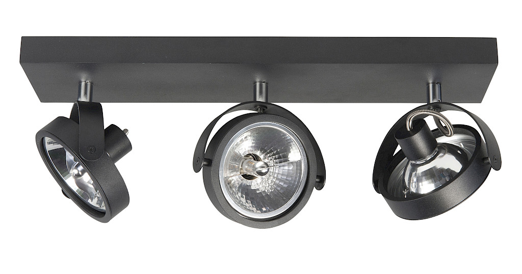 Plafondlamp Malta zwart 3 lichtpunten . Deze lamp wordt compleet geleverd met lichtbron(nen). Als lichtbron kan zowel een halogeen- als LED lamp worden gebruikt. Dimbaar via externe dimmer.