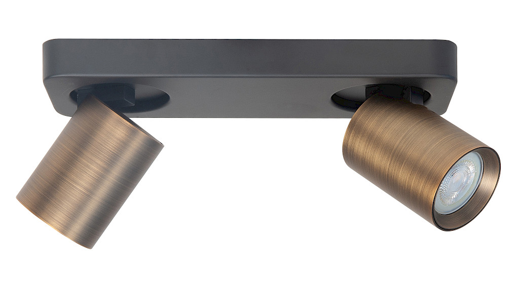 Plafondlamp Oliver zwart + brons 2 lichtpunten . Deze lamp wordt geleverd zonder lichtbron(nen). Als lichtbron kan alleen een LED lamp worden gebruikt. Dimbaar via externe dimmer.