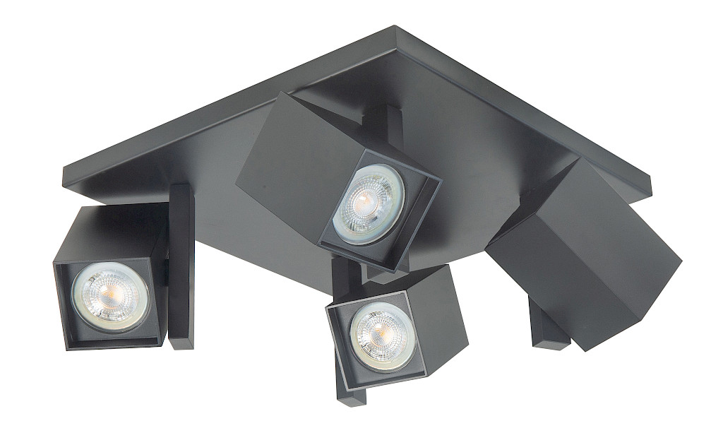 Plafondlamp Oslo zwart 4 lichtpunten . Deze lamp wordt geleverd zonder lichtbron(nen). Als lichtbron kan zowel een halogeen- als LED lamp worden gebruikt. Dimbaar via externe dimmer.