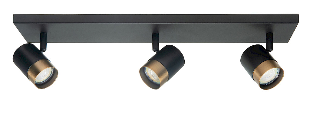 Plafondlamp Savona rechthoek zwart + brons 3 lichtpunten