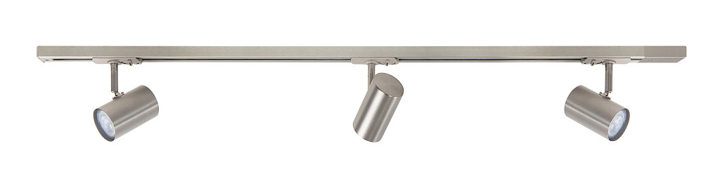 Plafondlamp Track nikkel 3 lichtpunten . Deze lamp wordt geleverd zonder lichtbron(nen). Als lichtbron kan zowel een halogeen- als LED lamp worden gebruikt. Dimbaar via externe dimmer.