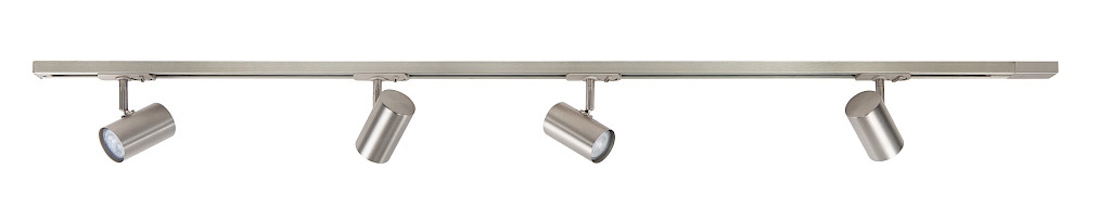Plafondlamp Track nikkel 4 lichtpunten . Deze lamp wordt geleverd zonder lichtbron(nen). Als lichtbron kan zowel een halogeen- als LED lamp worden gebruikt. Dimbaar via externe dimmer.