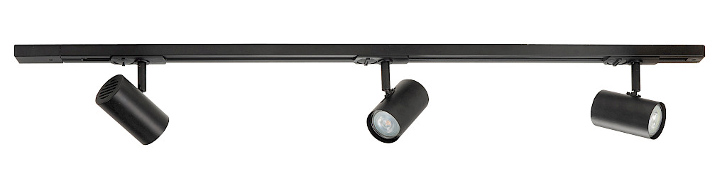 Plafondlamp Track zwart 3 lichtpunten . Deze lamp wordt geleverd zonder lichtbron(nen). Als lichtbron kan zowel een halogeen- als LED lamp worden gebruikt. Dimbaar via externe dimmer.