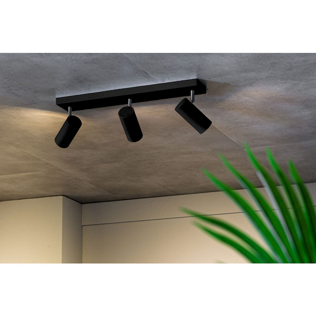 Plafondspot Mirare zwart metaal 3-spots