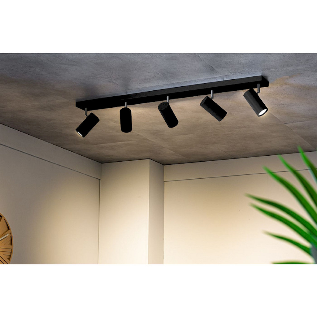 5 spots, uitgevoerd in zwart metaal. OP=OP