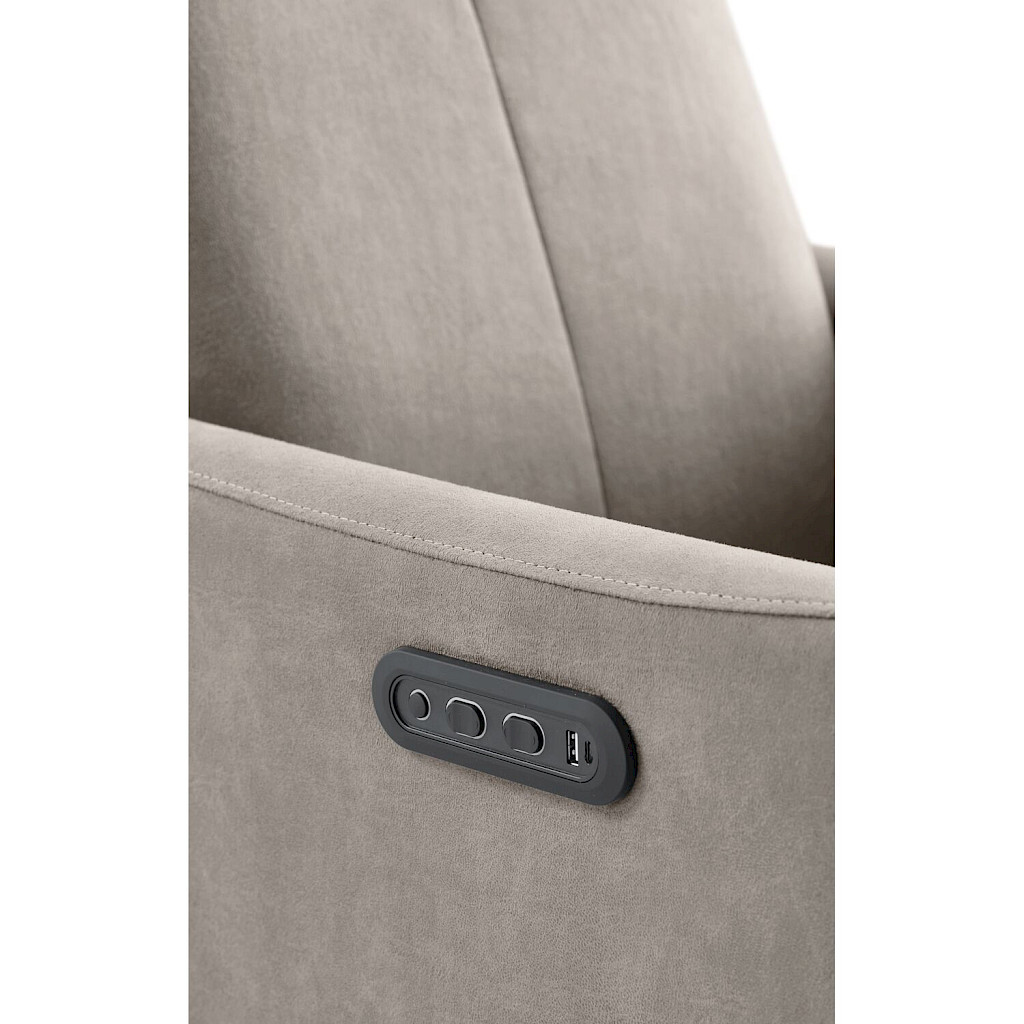 Deze relaxfauteuil maakt gebruik van twee motoren, waarmee je de rugleuning en voetensteun onafhankelijk van elkaar elektrisch kunt verstellen via de tiptoetsen aan de buitenzijde van de armleuning. Daarnaast maakt de 360 graden draaifunctie het gemakkelijk om je in de ruimte te verplaatsen en moeiteloos van richting te veranderen.