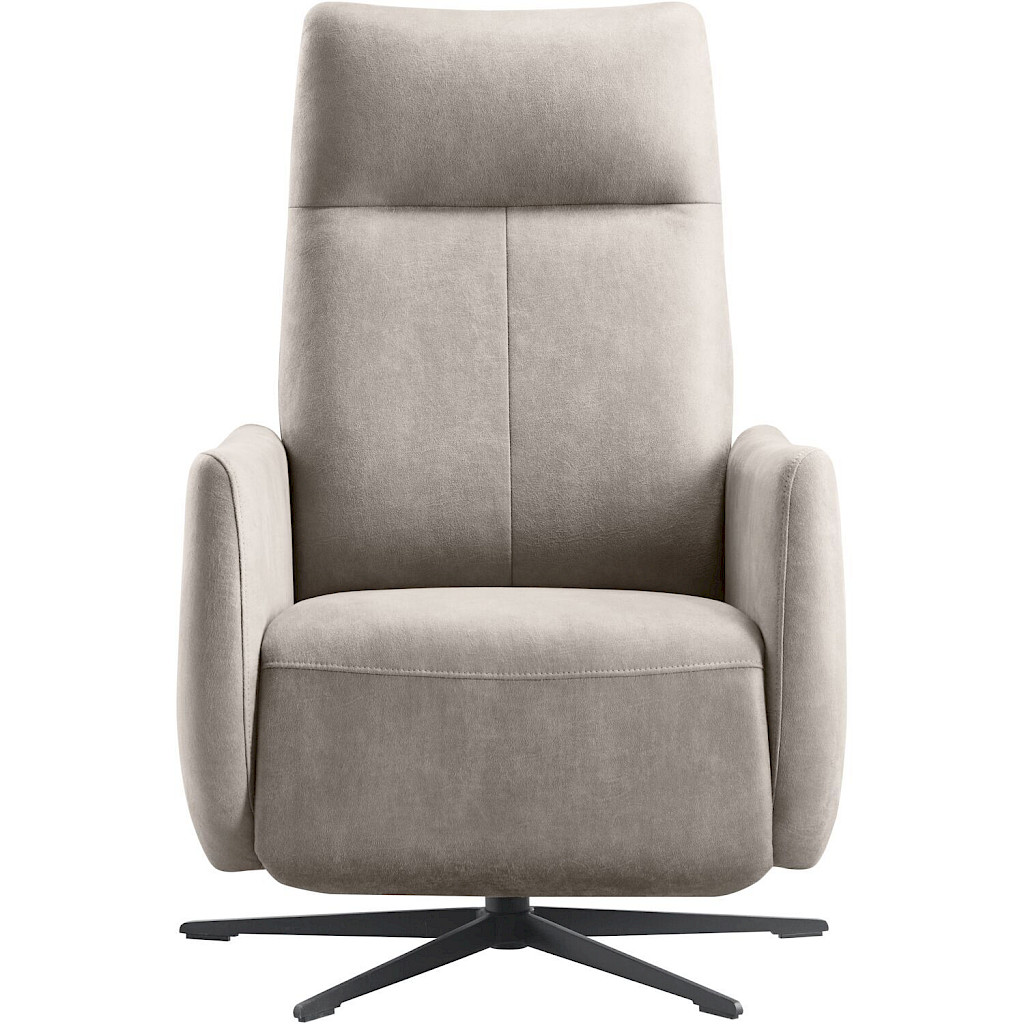 Deze draai- en relaxfauteuil is uitgevoerd met een lichtgrijs microleder. Dit duurzame, samengestelde bekleding van stof en leer die de luxe uitstraling van echt leer combineert met de voordelen van eenvoudig onderhoud. Het horizontale sierstiksel in de rugleuning geeft de fauteuil een moderne uitstraling, terwijl de elegante kleur zich gemakkelijk laat combineren met elke interieurstijl. De zwarte metalen 5-teens poot maakt de look compleet.