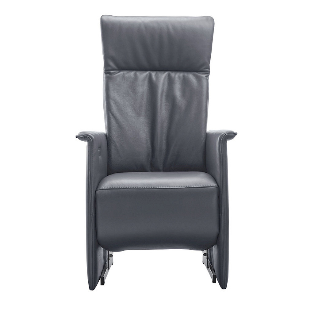 XL uitvoering, uitgevoerd in toledo antraciet met horizontale naad in de rug (type D), armleuning 1 (doorlopend), pocketvering in de zitting, elektrisch verstelbaar d.m.v. 2 motoren incl. sta-op functie, accu en kunststof zwarte pootjes.