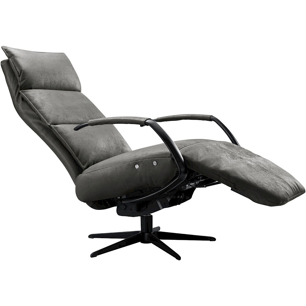 Relaxfauteuil Moio is uitgevoerd in microleder dakota in de actuele kleur antraciet. De shortsleeve op de zwart metalen arm is uitgevoerd in hetzelfde microleder als de relaxfauteuil. Microleder is een samengesteld leder: de onderlaag bestaat uit lederen vezels, de toplaag is een onderhoudsvriendelijke microvezel. Microleder dient als stof onderhouden te worden, hiervoor adviseren we Textile & Leather protector. In de winkel verkrijgbaar in vele stoffen, microleder of leder; zo kun je altijd de beste stof, microleder of kleur voor jouw interieur kiezen.