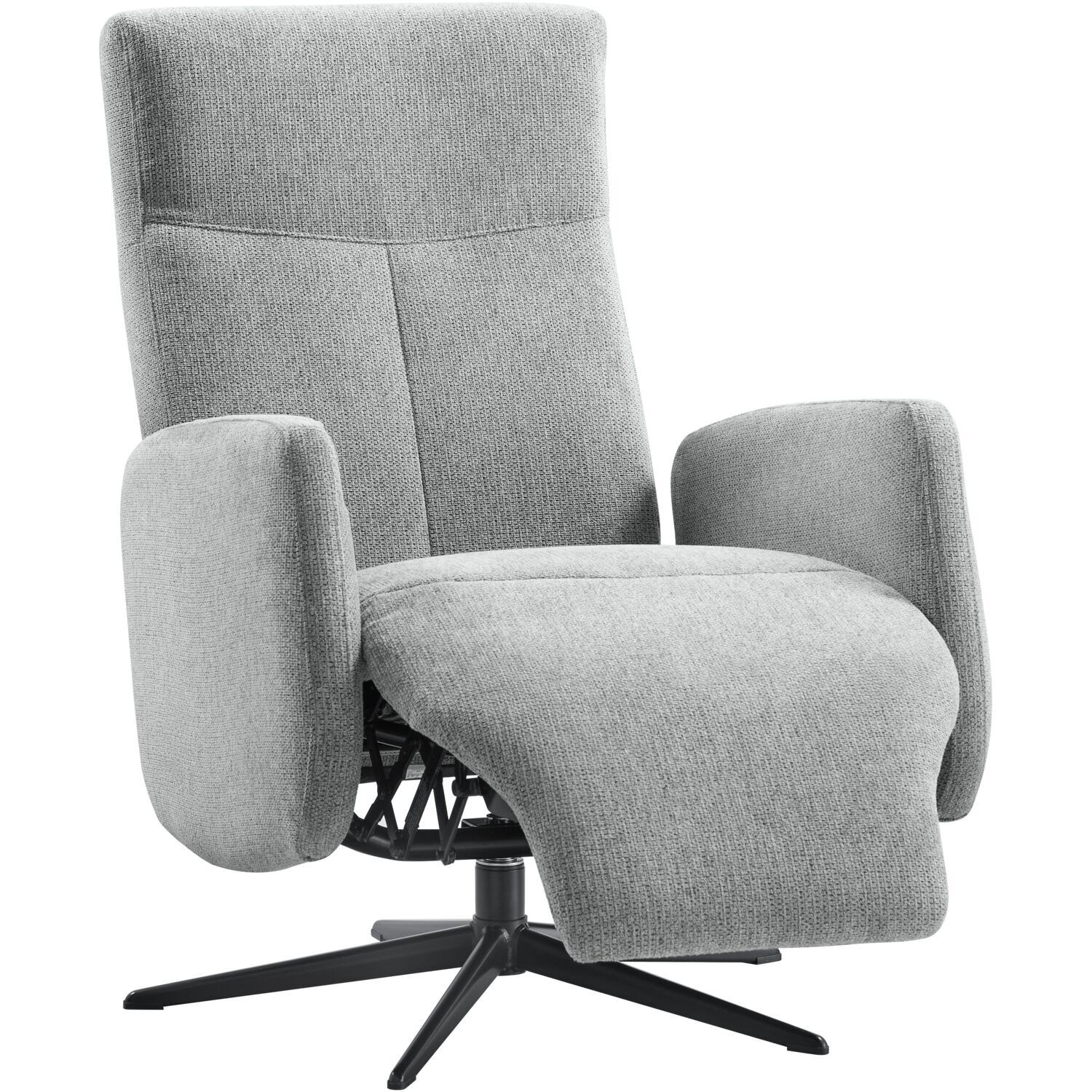 De relaxfauteuil is voorzien van een handmatig push-back systeem. Door met je rug tegen de rugleuning te duwen, beweegt de rug naar achteren en komt de voetensteun naar voren, soepel en zonder knoppen. Daarnaast is de fauteuil 360 graden draaibaar, waardoor je moeiteloos meedraait met de ruimte.