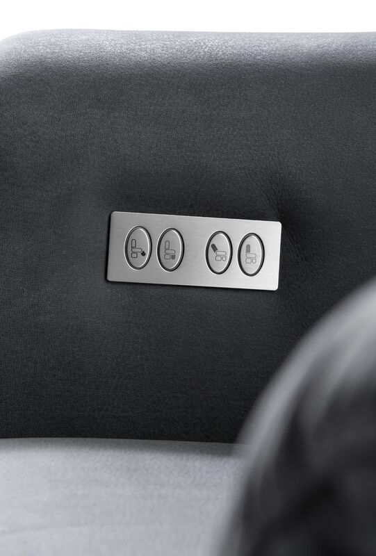 Medium uitvoering in leder W10 grey met elektrisch verstelbare rugleuning en voetensteun d.m.v. 2 motoren en zwart metalen kruisvoet KMF3.