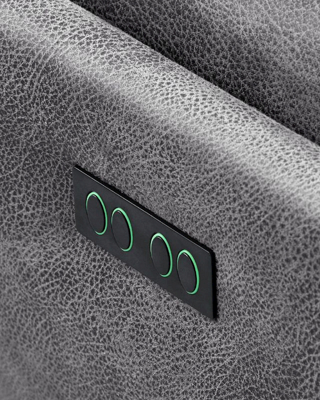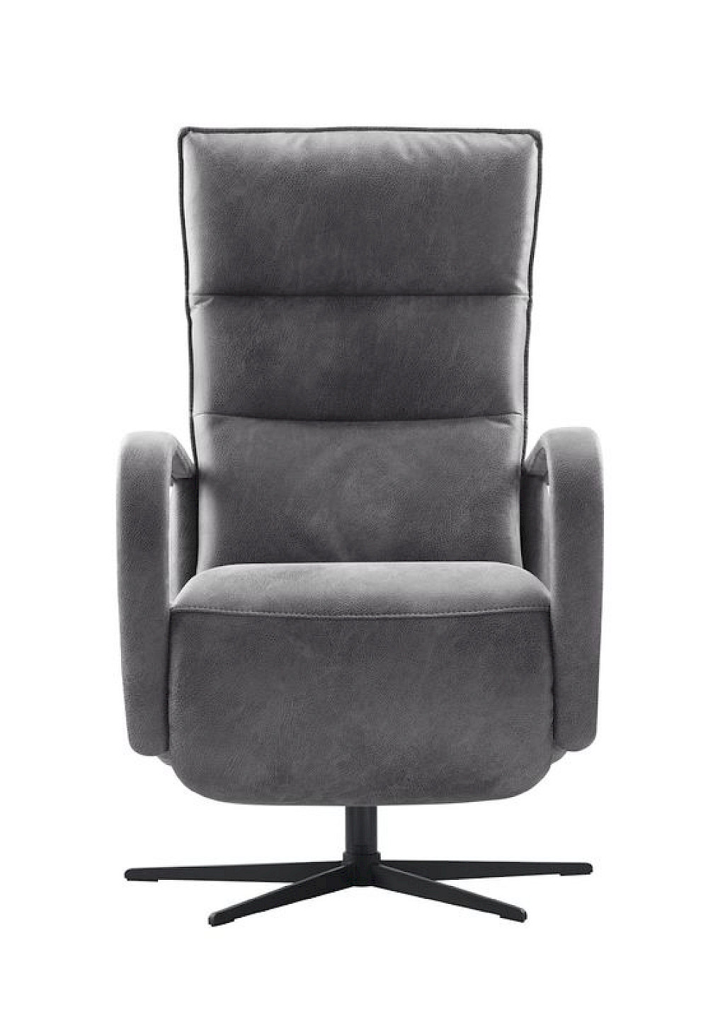 Uitgevoerd in microleder dakota 68-d.grijs met horizontale banen in de rug (rug A), arm 1, zithoogte +3cm, elektrisch verstelbaar (2M), accu, pocketvering met een dubbele toplaag van HR-koudschuim in de zitting, HR-koudschuim in de rug en zwarte metalen 5-teensvoet, type KMF3. | maximale belastbaarheid 120 kg