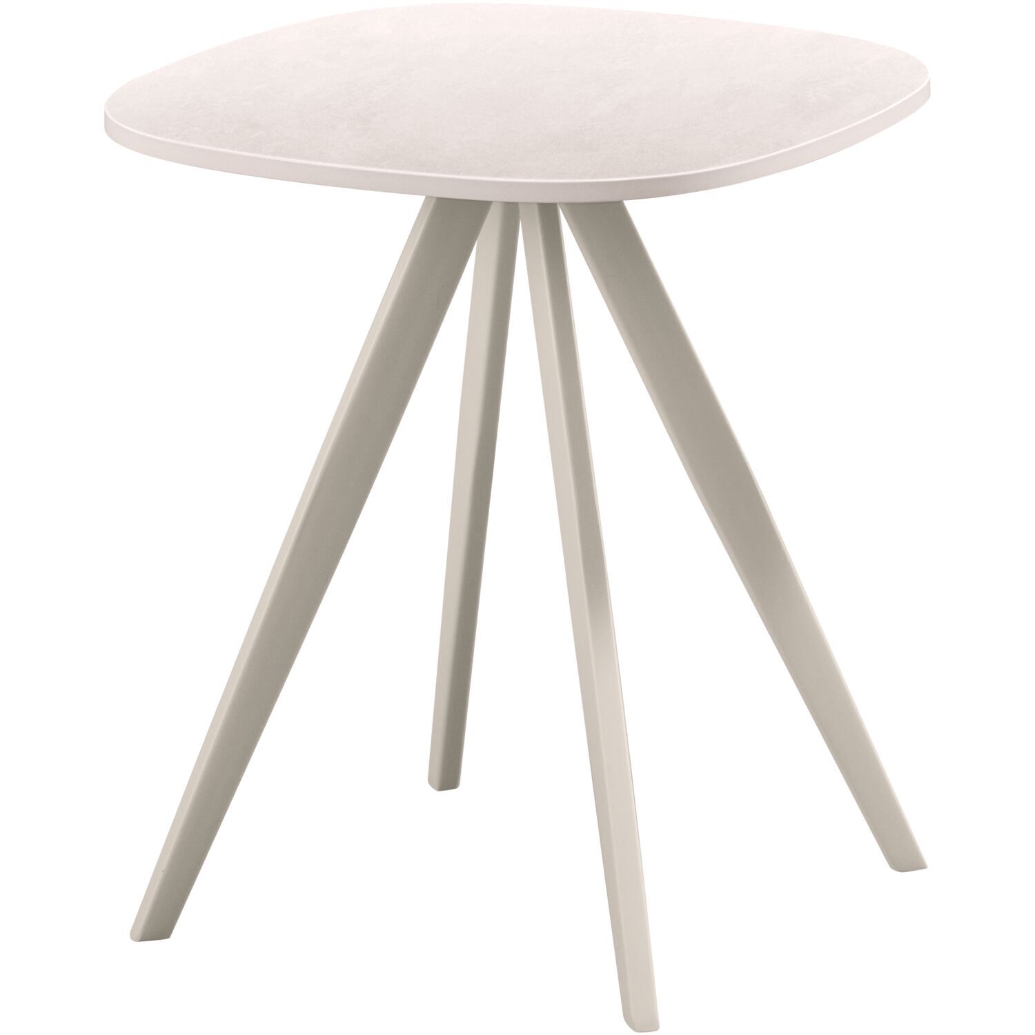 Deze bijzetafel is uitgevoerd met een keramisch blad in een witte kleur met een marmerlook. Het vierkante blad met afgeronde hoeken past perfect bij de woontrends van nu. Het blad is slijtvast en geschikt voor dagelijks gebruik, waardoor het lang mooi blijft. Het metalen onderstel met kruispoot zorgt voor een stevige basis.