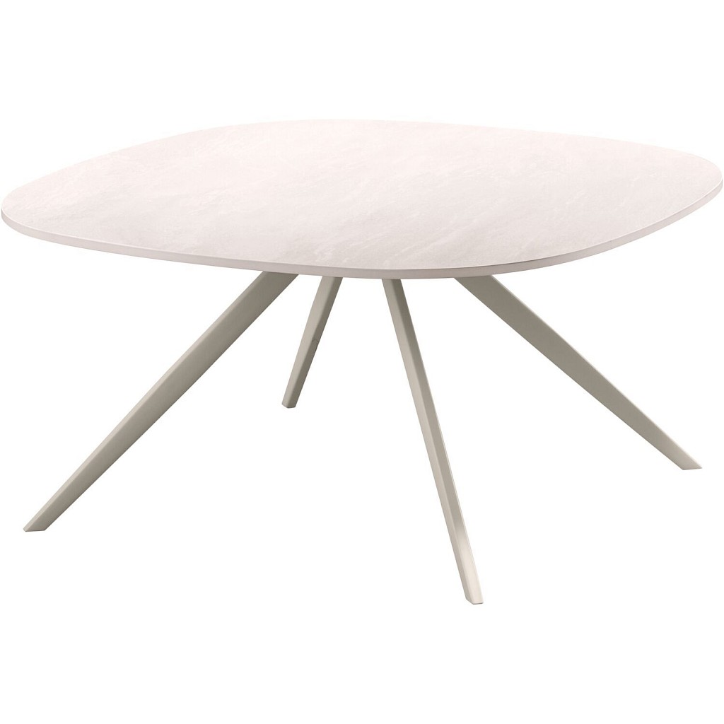Deze salontafel is uitgevoerd met een keramisch blad in een witte kleur met een marmerlook. Het vierkante blad met afgeronde hoeken past perfect bij de woontrends van nu. Het blad is slijtvast en geschikt voor dagelijks gebruik, waardoor het lang mooi blijft. Het metalen onderstel met kruispoot zorgt voor een stevige basis.
