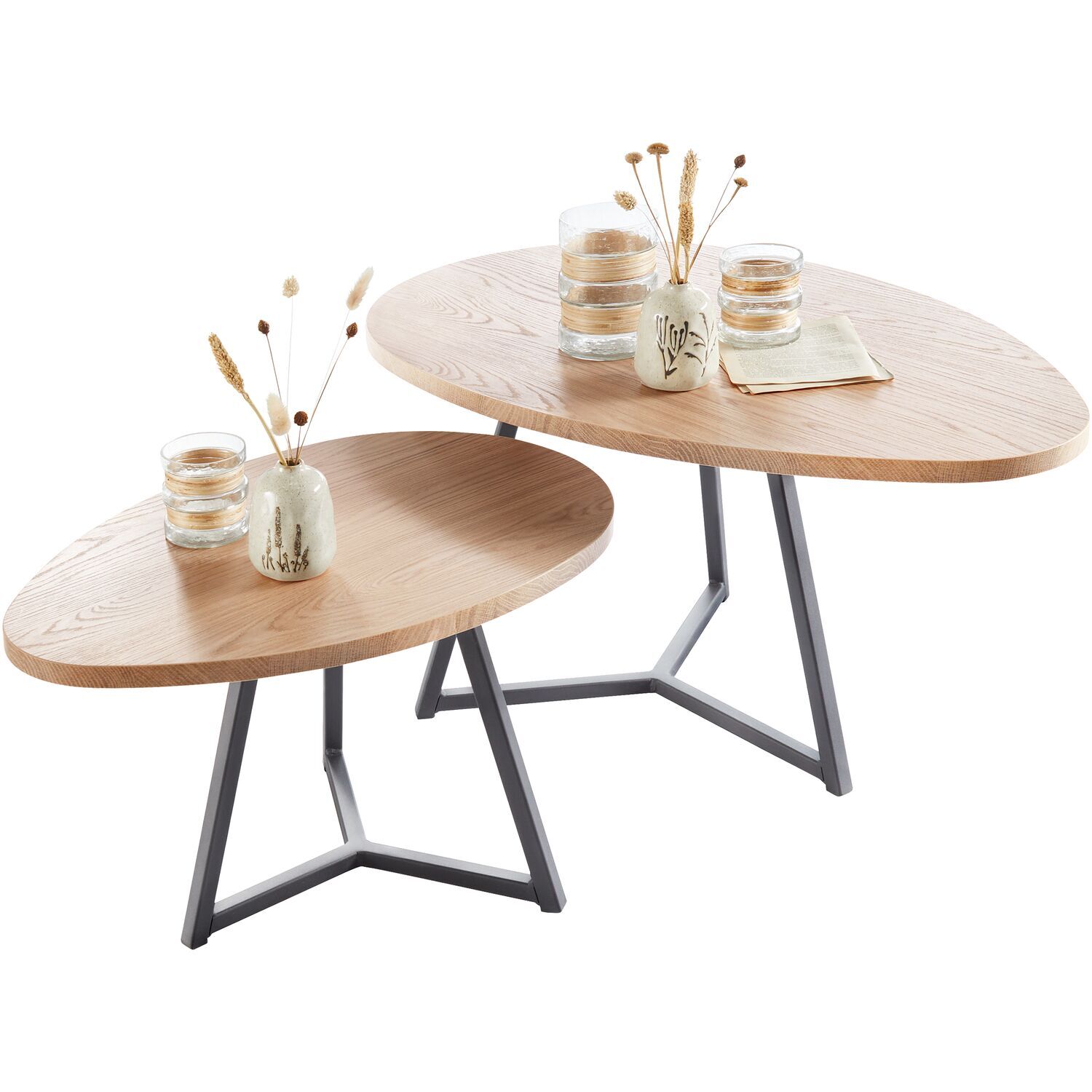 Deze moderne salontafelset is uitgevoerd in Lamulux in de kleur Misty Oak, een lichte en natuurlijke kleur. Lamulux heeft de uitstraling van echt hout en dankzij het subtiele reliëf voelt het ook zo aan