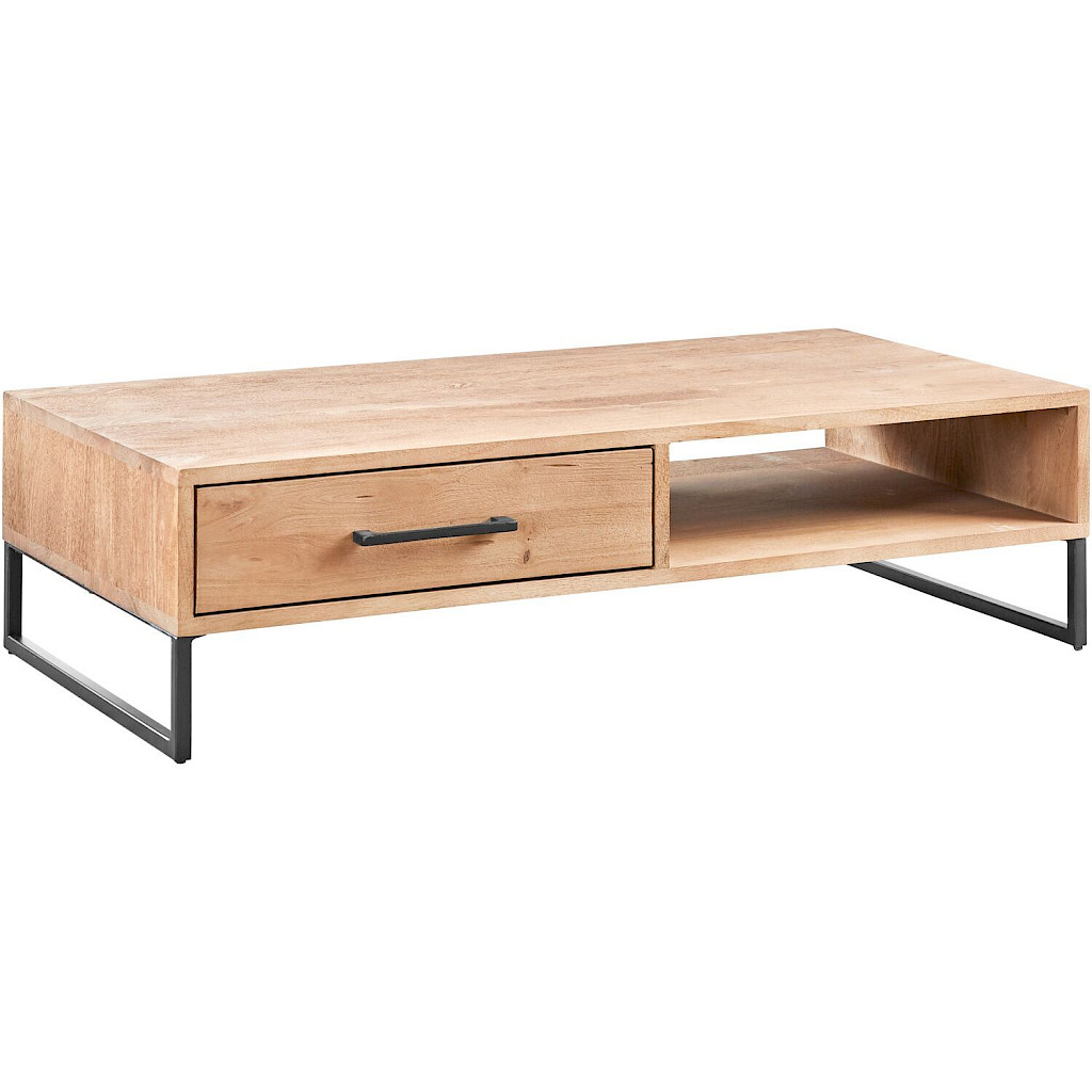 Transformeer jouw woonruimte met onze salontafel Piastra, vervaardigd uit mangohout (gezandstraald) in kleur naturel in perfecte harmonie met een elegant metalen frame. Het mangohout, bekend om zijn duurzaamheid en warme tinten, voegt een natuurlijk element toe aan je ruimte terwijl het metalen frame een eigentijdse uitstraling geeft. De houtnerven en nuances maken elk meubel uniek en dragen bij aan een karaktervolle uitstraling.