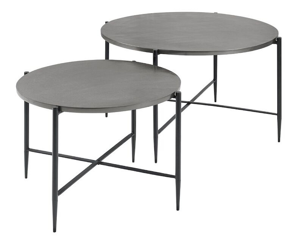 Salontafel set Pilunio bestaat uit 2 ronde salontafels in de kleur nikkel met een zwart onderstel. Deze salontafels hebben een tijdloos ontwerp met het slanke metalen frame en de ronde tafelbladen, wat een eigentijdse uitstraling geeft die bij vrijwel elke interieurstijl past. Met twee verschillende tafelmaten kun je ze gebruiken als een duo of apart, afhankelijk van je behoeften. De grootste tafel is 45 cm hoog en heeft een doorsnede van 84 cm. De kleine tafel is 41 cm hoog en heeft een doorsnee van 64 cm. Ze zijn gemaakt van metaal, waardoor ze stevig en duurzaam zijn.