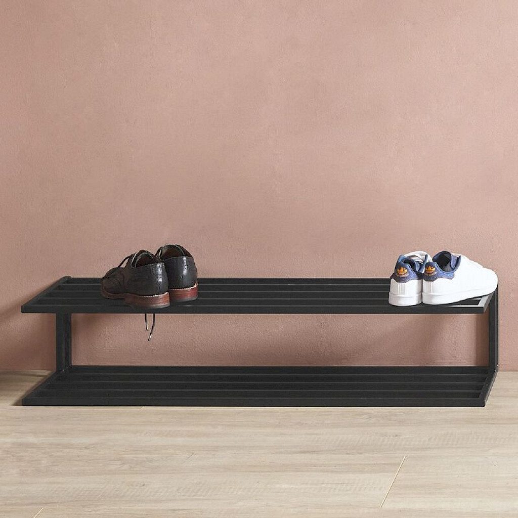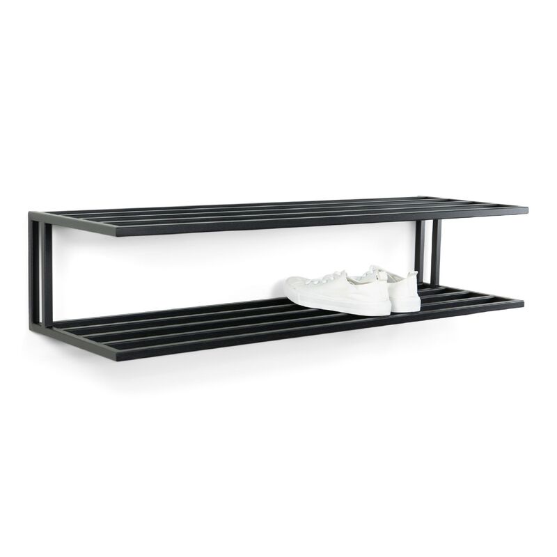 Schoenenrek in zwart staal. Wandmontage is mogelijk.