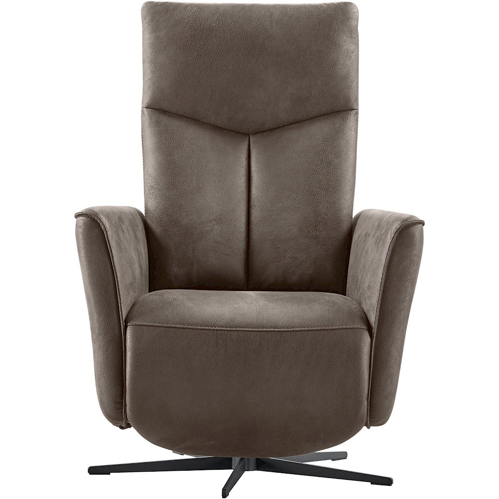 De relaxfauteuil Seduto heeft een moderne uitstraling. Deze uitvoering is bekleed met bruin microleder, een sterk en duurzaam materiaal dat zacht aanvoelt en comfortabel zit. Het Y-vormige stiksel met voorzetkussen in de rug voegt een subtiel detail toe, terwijl de volledig gestoffeerde armleuningen en zwarte 5-teensvoet de fauteuil een stoere en eigentijdse look geven.