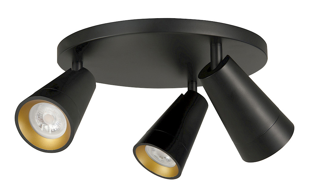 Strakke ronde 3 lichts spot zwart-goud Petunia