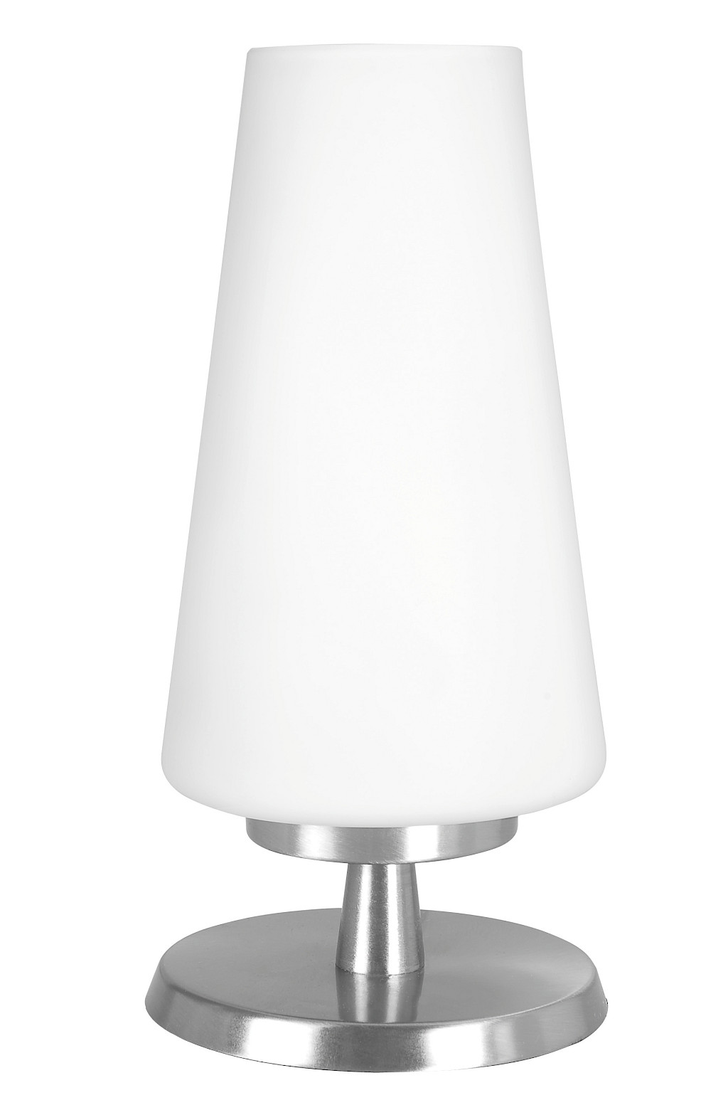 Tafellamp Chloé Touch nikkel met 1 lichtpunt en Ø 10 cm. Deze lamp wordt compleet geleverd met lichtbron(nen). Als lichtbron kan zowel een halogeen- als LED lamp worden gebruikt. Incl. 3-standen aanraakschakelaar.