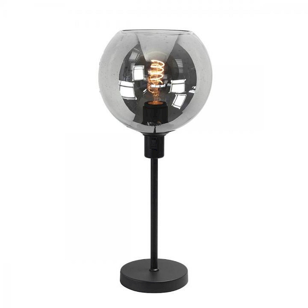 Het glas heeft een diameter van 20 cm. De hoogte van de tafellamp is 51cm. De lamp is gemaakt van mat zwart metaal en glad smoke glas. De lamp heeft een E27 fitting en wordt geleverd exclusief lichtbron.