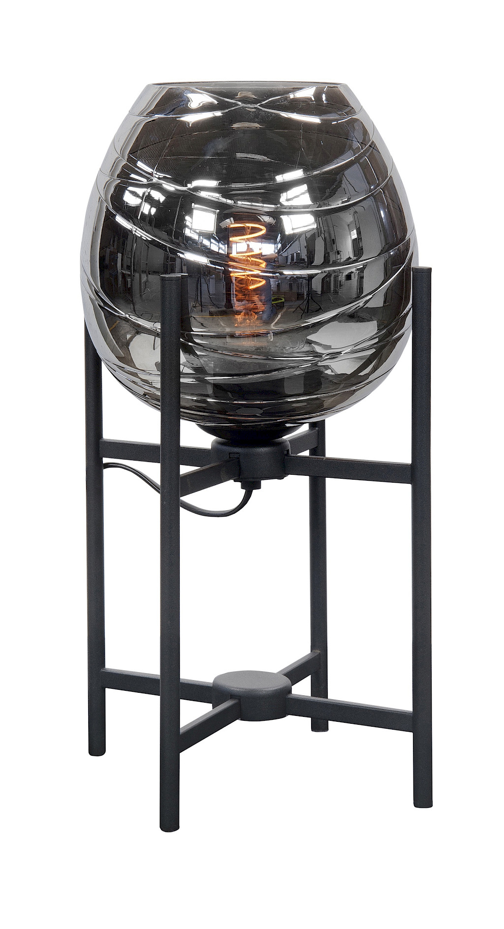 Tafellamp Fantasy zwart + smoke glas met 1 lichtpunt en Ø 21 cm. Deze lamp wordt geleverd zonder lichtbron(nen). Als lichtbron kan zowel een gloei- als LED lamp worden gebruikt. Dimbaar via externe dimmer.