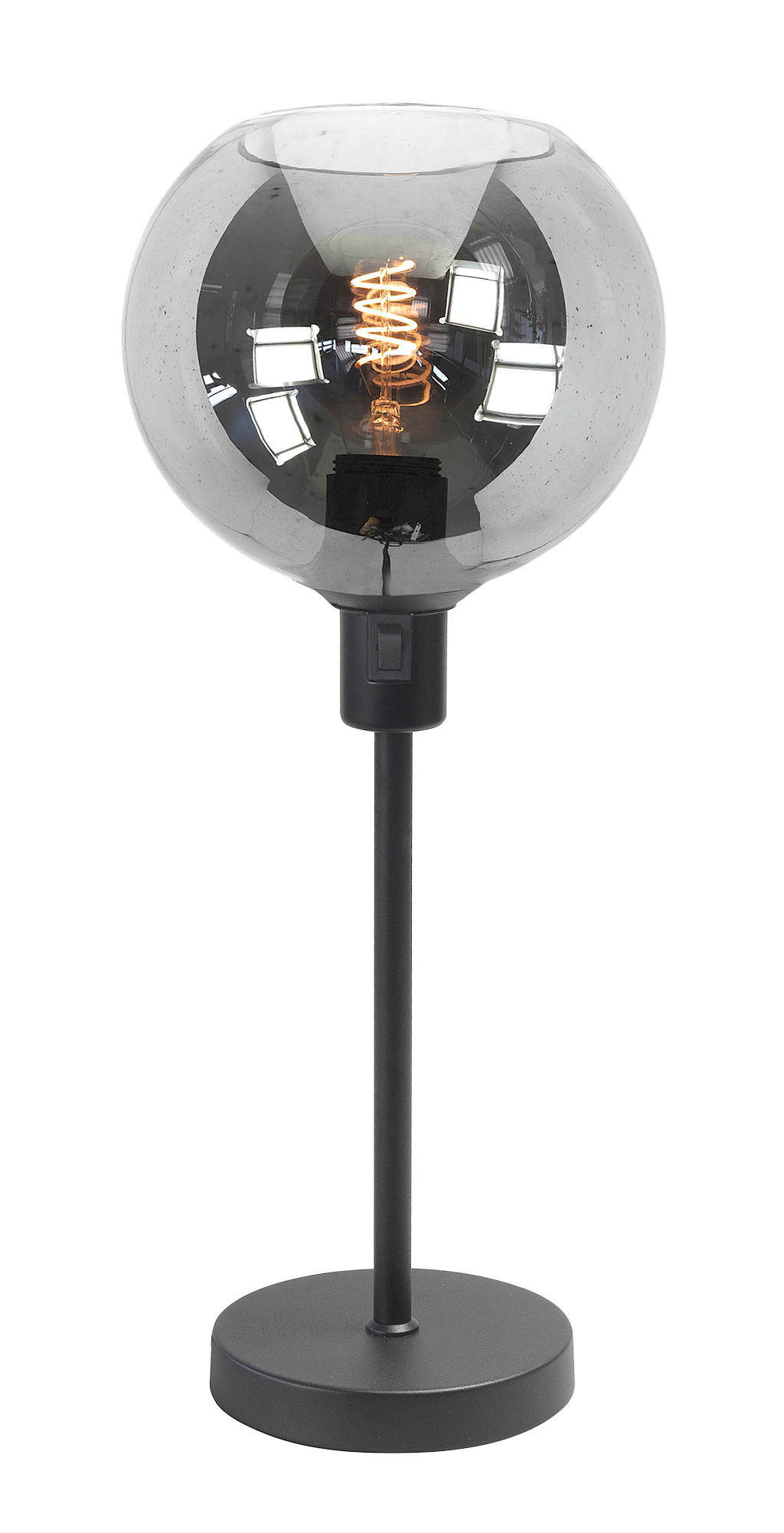 Tafellamp Fantasy Globe zwart + smoke glas met 1 lichtpunt en Ø 20 cm. Deze lamp wordt geleverd zonder lichtbron(nen). Als lichtbron kan zowel een gloei- als LED lamp worden gebruikt. Dimbaar via externe dimmer.
