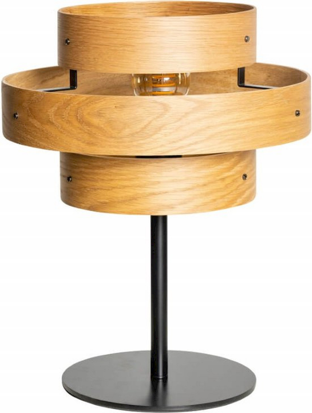 De ETH Oaknut tafellamp heeft een speels en stijlvol ontwerp met drie houten ringen, wat zorgt voor een warme en natuurlijke uitstraling. Deze lamp past perfect in een Scandinavisch of landelijk interieur en komt mooi tot zijn recht op een dressoir, nachtkastje of bijzettafel. Combineer de tafellamp met andere modellen uit de Oaknut collectie voor een harmonieus geheel. Dankzij de handige schakelaar op het snoer zet je de lamp eenvoudig aan en uit. De lamp wordt geleverd zonder lichtbron en is geschikt voor een E27 fitting tot maximaal 15W.