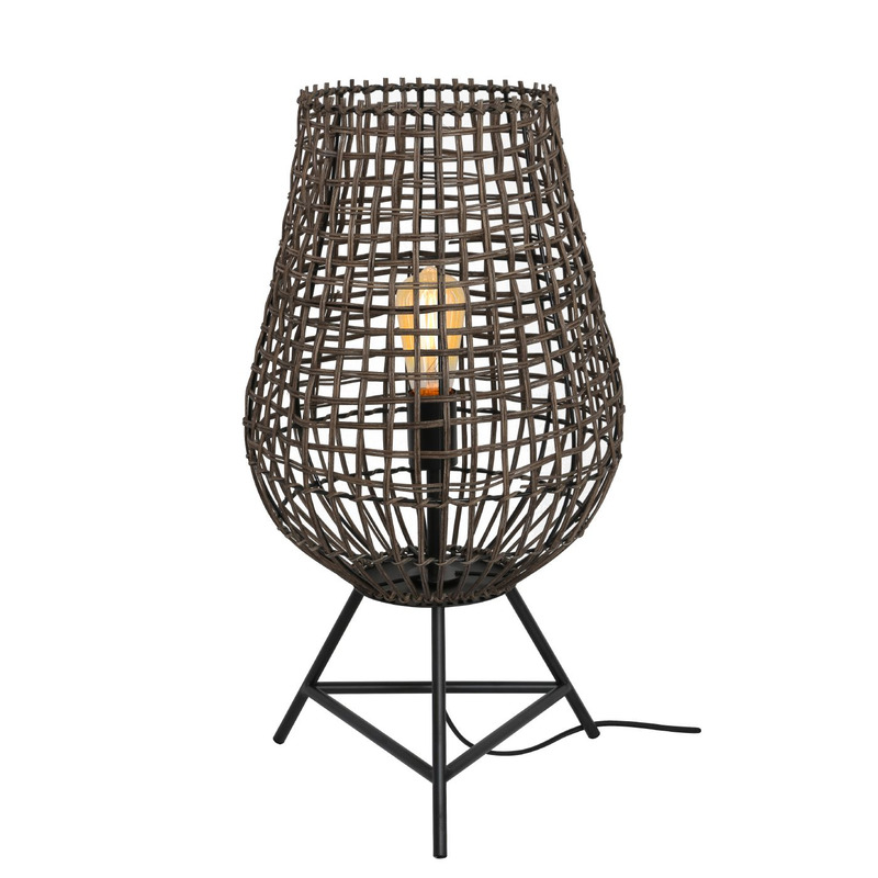 Tafellamp Scarperio rond 33 cm rotan bruin