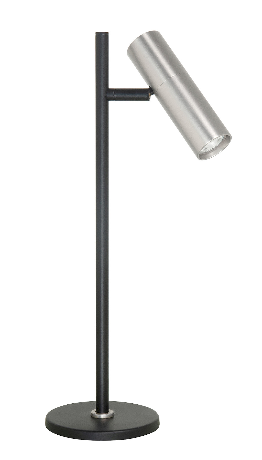 Tafellamp Trend zwart + nikkel met 1 lichtpunt en Ø 12 cm. Deze lamp wordt geleverd zonder lichtbron(nen). Als lichtbron kan een mini GU10 lamp worden gebruikt. Dimbaar via externe dimmer.