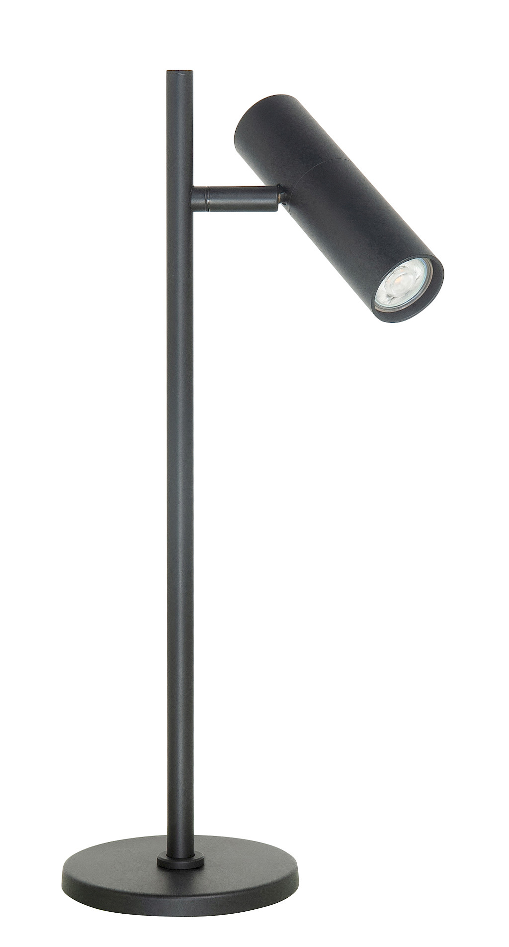 Tafellamp Trend zwart met 1 lichtpunt en Ø 12 cm. Deze lamp wordt geleverd zonder lichtbron(nen). Als lichtbron kan een mini GU10 lamp worden gebruikt. Dimbaar via externe dimmer.