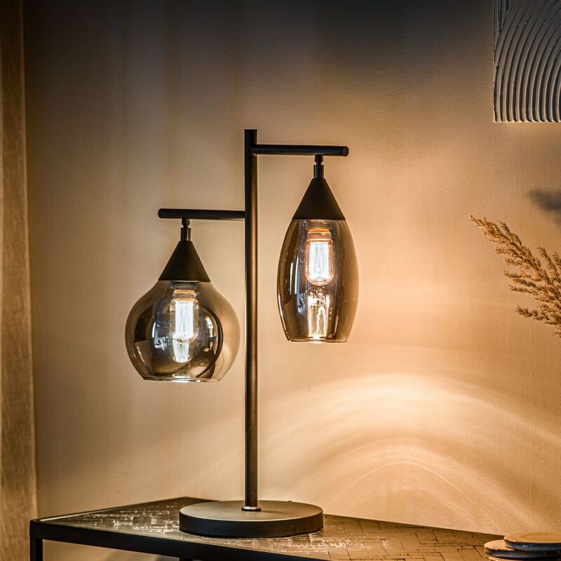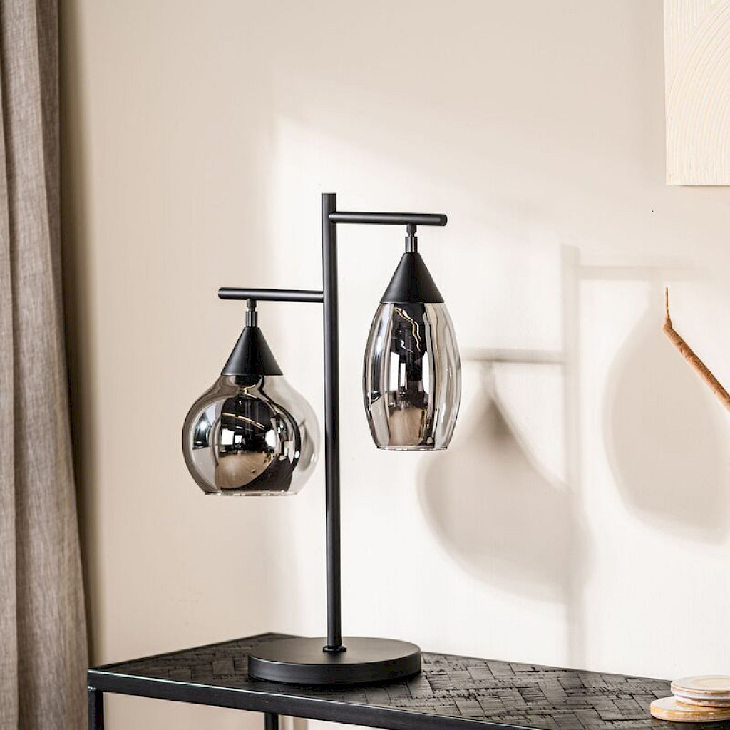 Tafellamp zwart smoke glas 2-lichts - Lungo