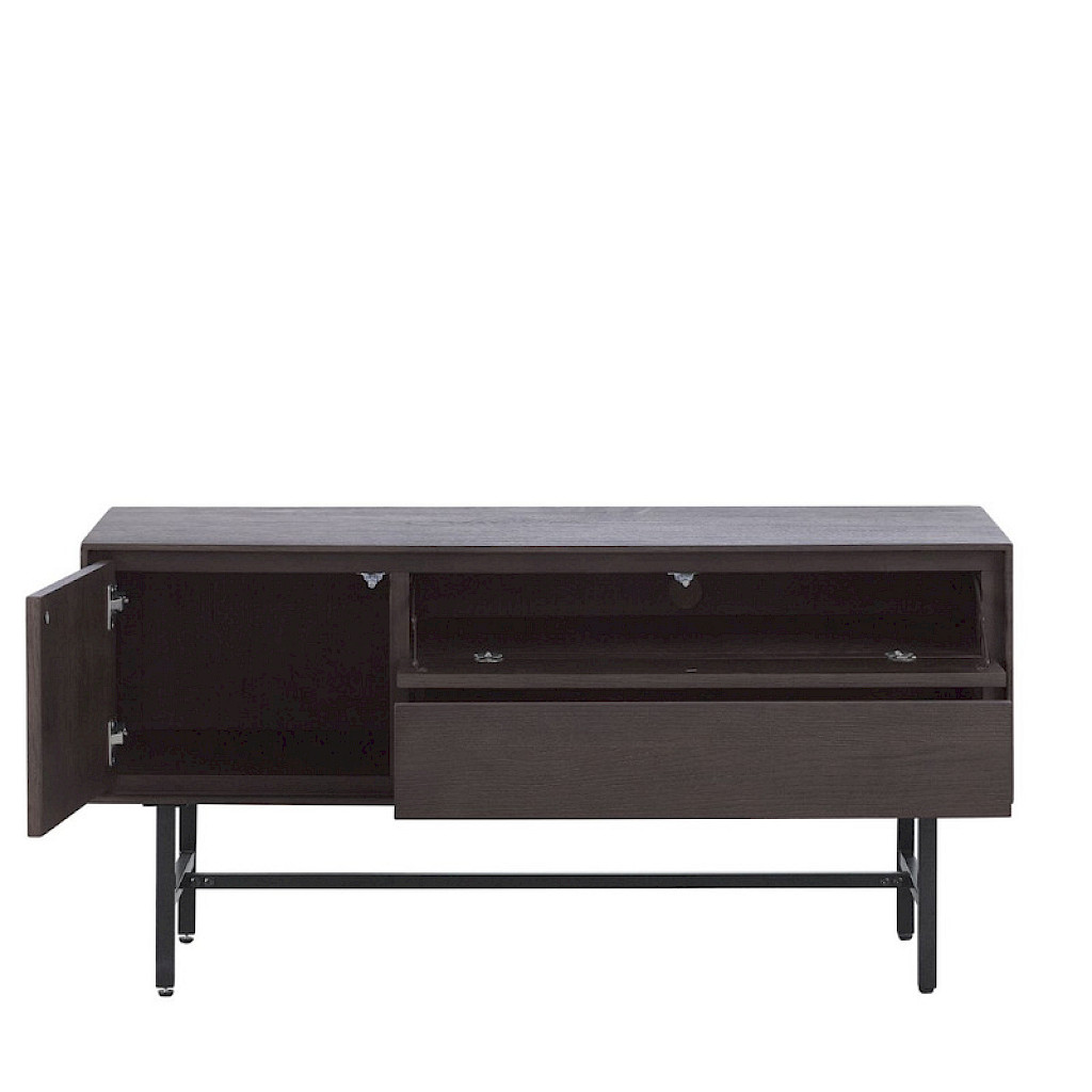 Woonprogramma Belvio is een harmonieuze samenstelling van natuurlijke elegantie en eigentijdse stijl. Onze prachtige collectie woonmeubelen is vervaardigd uit MDF met eiken fineer en verfijnd met strakke metalen frames. De warme en toch moderne uitstraling van het eiken fineer in donker eiken geeft je interieur een tijdloze charme.