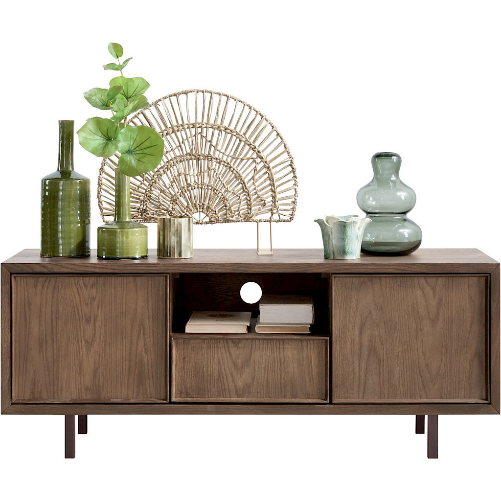 Het tv-meubel maakt deel uit van de woonserie Calvo. Combineer het met de bijpassende opbergkasten, dressoirs en salontafels voor een rustig en harmonieus geheel. De warme houtkleur combineert prachtig met zachte stoffen en lichte tinten, maar vormt ook een stijlvol contrast met donkere accenten.