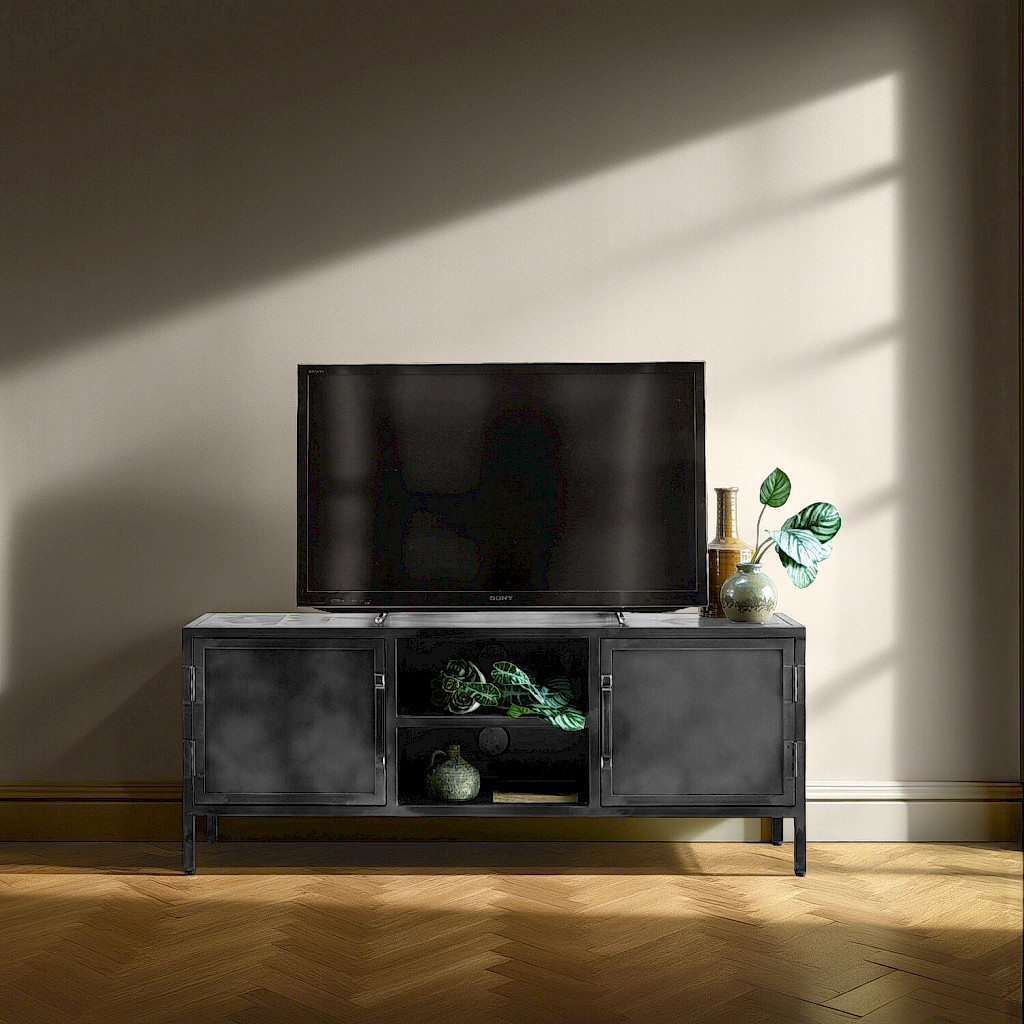 Dit TV-Meubel in de Carpino serie heeft een breedte van 137cm. Het TV-Meubel is 54cm hoog en de diepte is 40cm. Het is opgebouwd met een stevig stalenframe dat voorzien is van plaatstaal. De afmetingen van de open vakken zijn 17x42x40 (hxbxd). Het open vak is daarnaast voorzien van een afsluitbare ronde opening voor de kabeldoorvoer. Mocht de maat niet naar wens zijn, dan hebben we ook nog een kleinere of grotere maat beschikbaar.