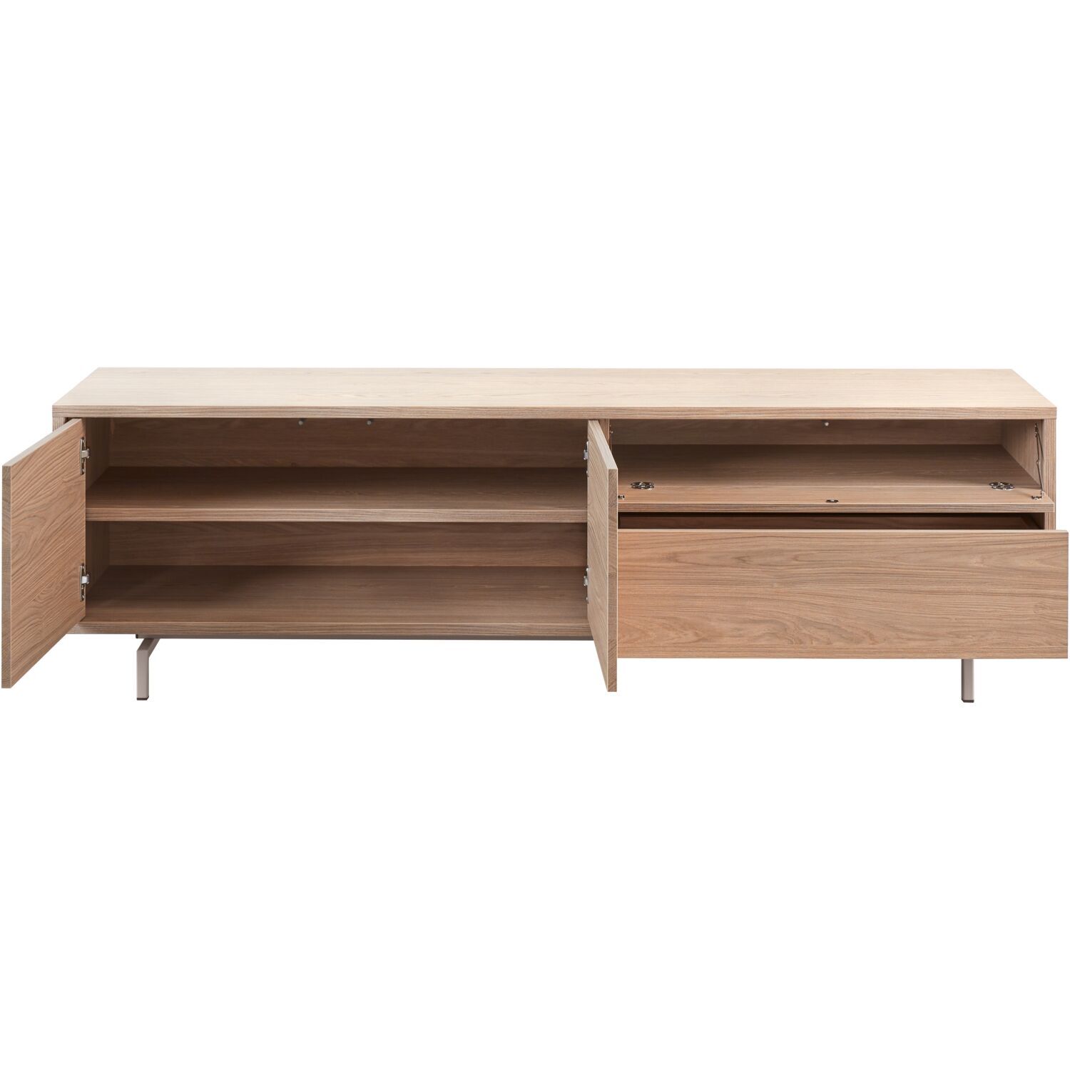 Met een hoogte van 53 cm, breedte van 180 cm en diepte van 45 cm is dit TV-meubel een praktische en stijlvolle toevoeging aan je interieur. Het heeft twee deuren, één lade en een klep, met een legplank achter de deuren. De klep is ideaal om je apparatuur uit het zicht te laten en toch gemakkelijk te bedienen. Dankzij het push to open systeem open je de lades en deuren eenvoudig met een lichte druk. De deuren zijn daarnaast voorzien van softclose, waardoor ze rustig openen en sluiten. Een klein duwtje bij het sluiten zorgt dat ze netjes dicht gaan. Het meubel wordt grotendeels gemonteerd geleverd; je hoeft alleen de poten nog te bevestigen.