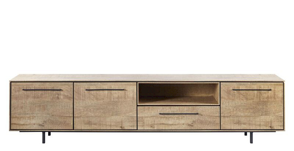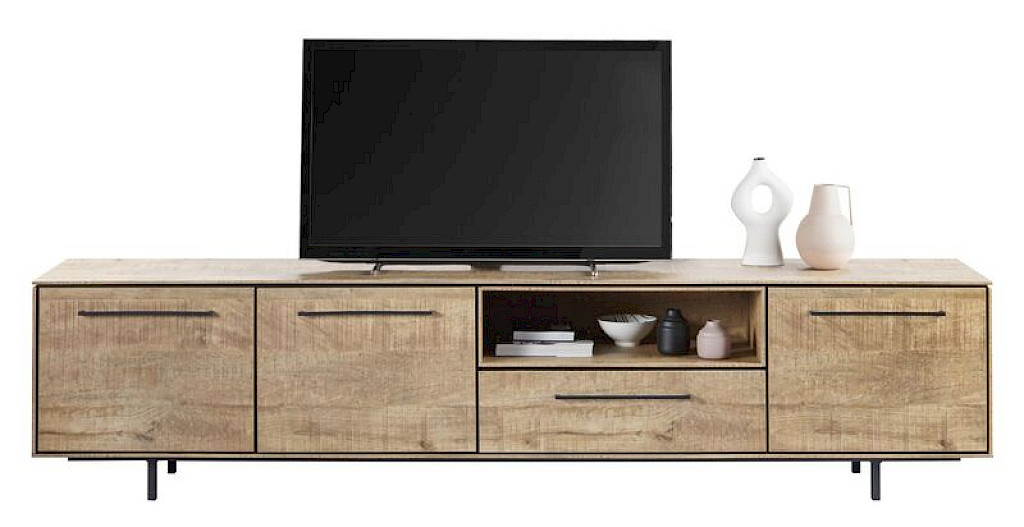 Dit tv-meubel is voorzien van 3 deuren, 1 lade en 1 open vak. De kast is 236cm breed en 55cm hoog. De maten van het open vak is h17,9 x b68,4 x d42,6cm. De deuren en lade zijn voorzien van een soft-close systeem, hierdoor vallen deze automatisch zachtjes dicht. De kast is voorgemonteerd, je kunt dus meteen beginnen met inrichten. Het tv-meubel is uitstekend te combineren met de andere meubelen uit de Rianta serie.
