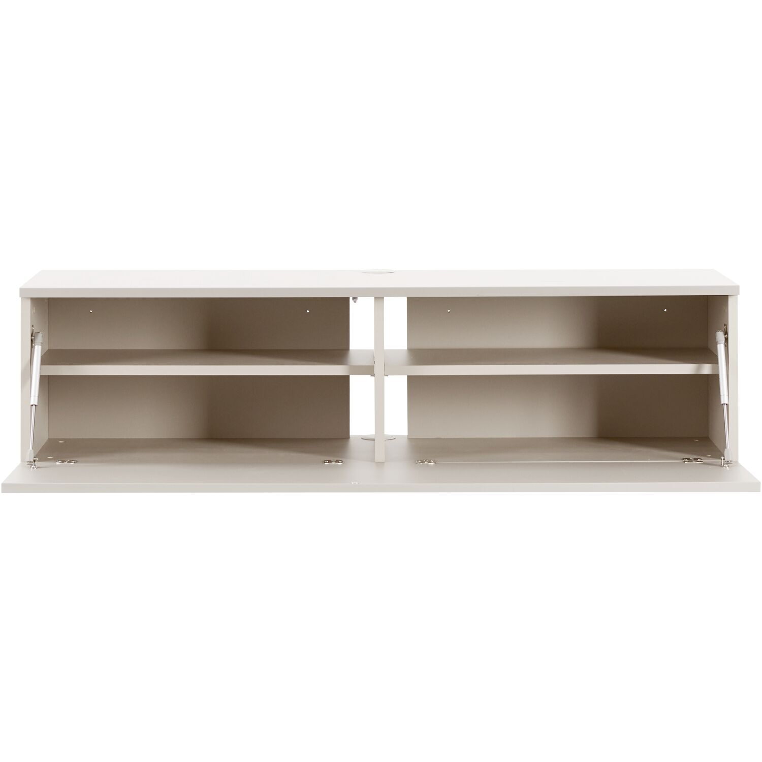 Hangende tv-meubels zijn helemaal van nu. Ze ogen ruimtelijk, modern en geven je interieur een opgeruimde uitstraling. Dit stijlvolle model heeft een glad gelakte afwerking in zandgrijs, een warme grijstint met natuurlijke uitstraling. De kleur geeft het meubel een rustige, stijlvolle uitstraling die in elk interieur tot zijn recht komt.