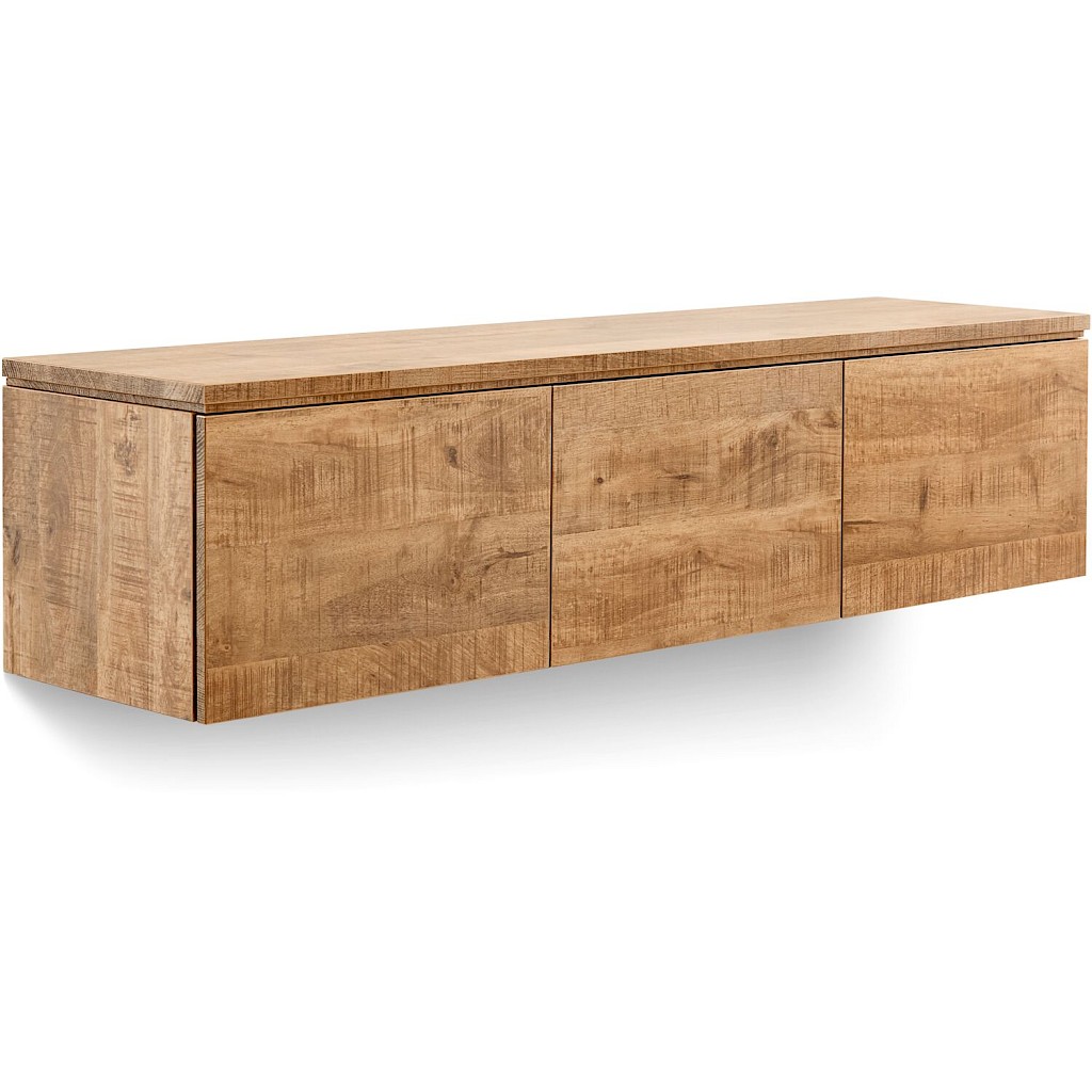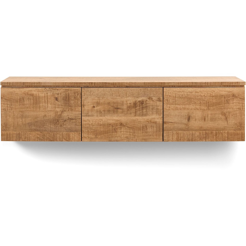 Dit TV-meubel bestaat uit drie hogere modules, voorzien van 3 kleppen en bovenblad in Mango decor.