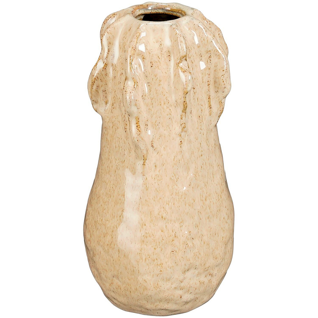Deze beige vaas brengt rust en zachtheid in je interieur. De neutrale kleur maakt hem gemakkelijk te combineren en geschikt voor verschillende woonstijlen. Of je er nu bloemen in plaatst of niet, hij voegt altijd een stijlvol en sfeervol accent toe aan je interieur.