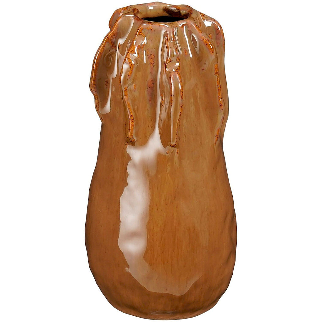 Deze bruine vaas brengt een rustige, natuurlijke sfeer in je interieur. Zijn eenvoudige en elegante vorm trekt meteen de aandacht, zowel met als zonder bloemen. Plaats hem op een eettafel, salontafel of dressoir en geef je woonruimte een subtiel, stijlvol en gezellig accent.