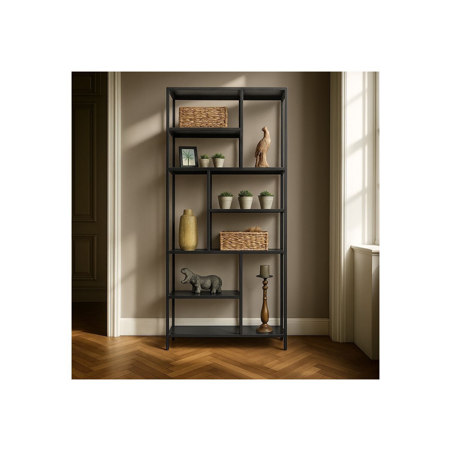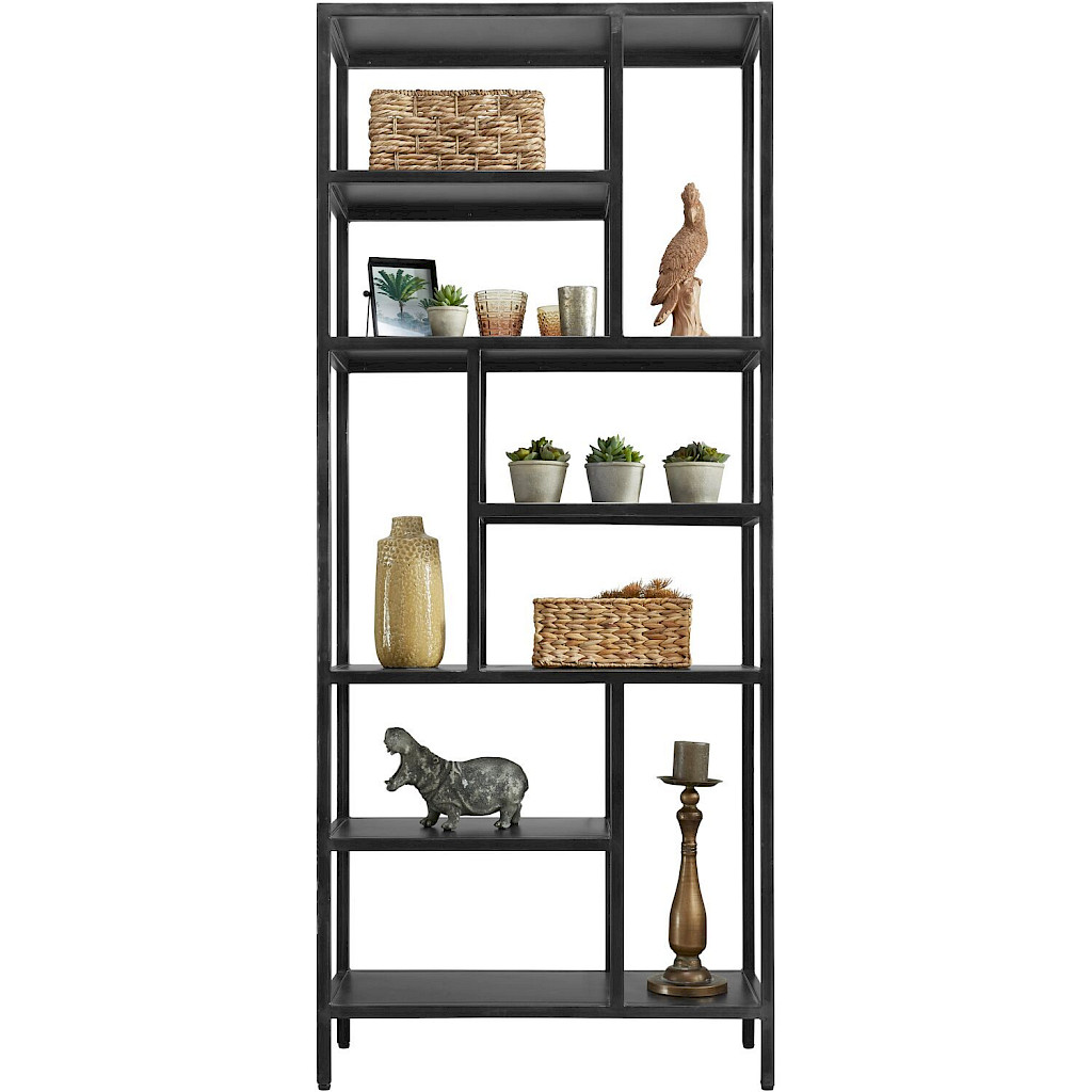Deze metalen industriële kast geeft jouw woonkamer een stukje karakter waar je trots op kunt zijn. De kast beschikt maar liefst over 9 open vakken, ideaal om opvallende of juist rustige accessoires in te tonen. De afmetingen zijn 85cm breed, 201cm hoog en 35cm diep. De kast wordt in zijn geheel geleverd. Mocht deze kast toch net te open zijn voor je, geen probleem, we hebben ook uitvoeringen met lades/deuren beschikbaar.